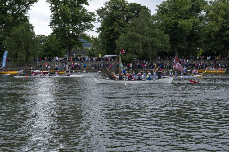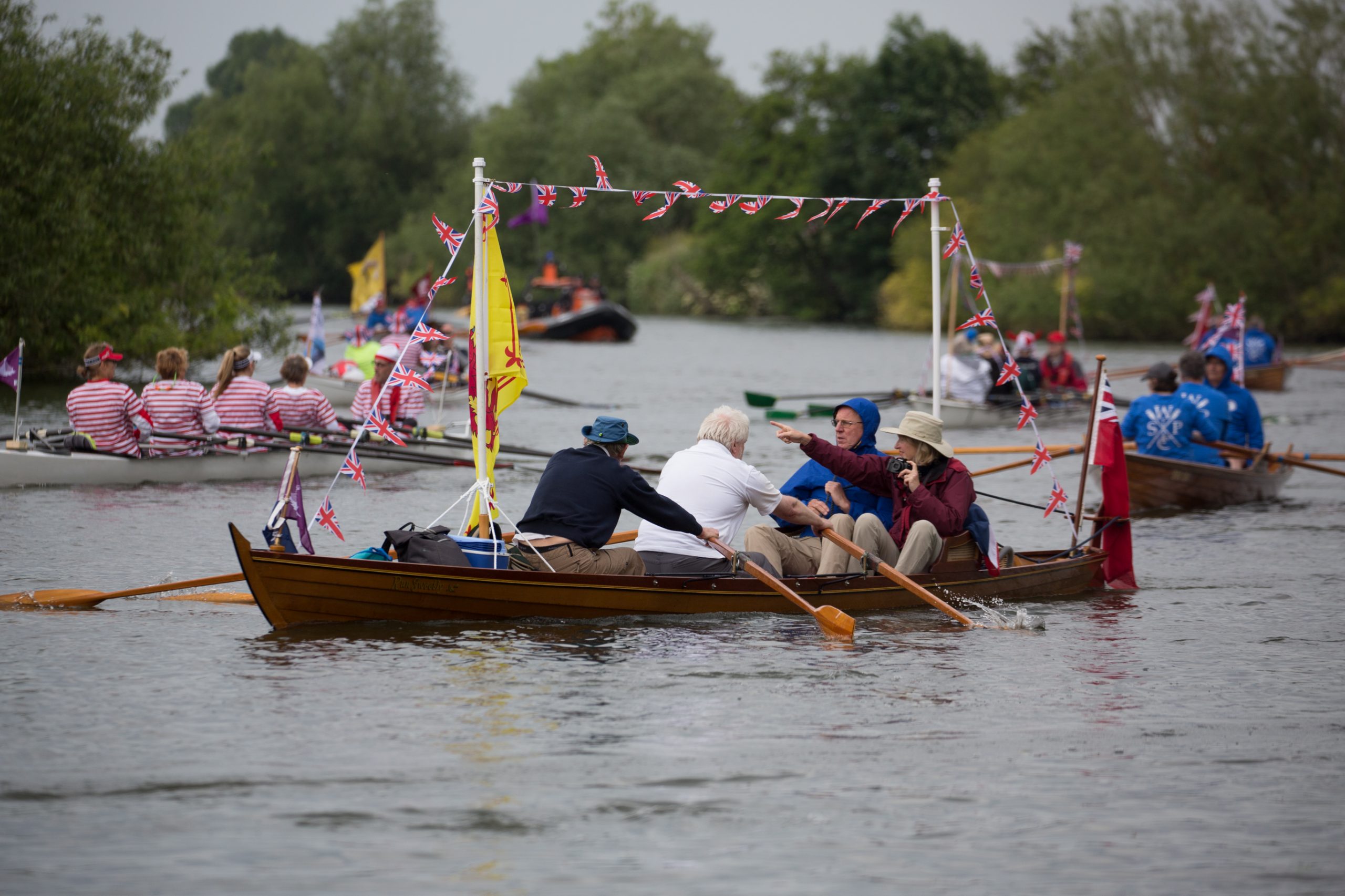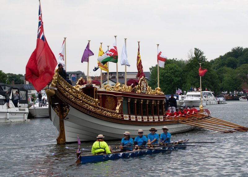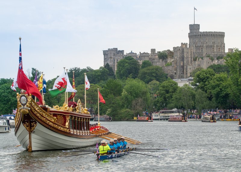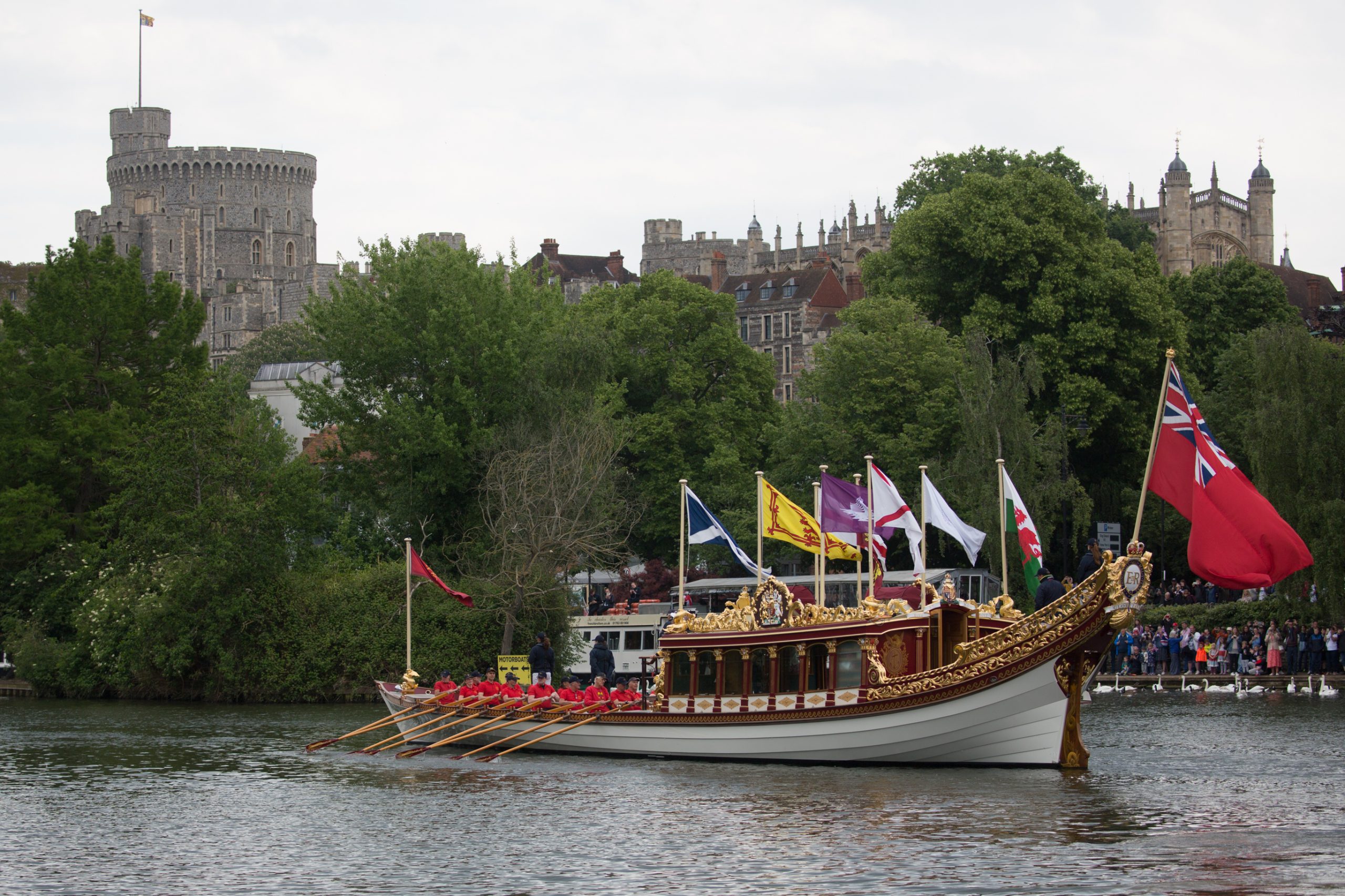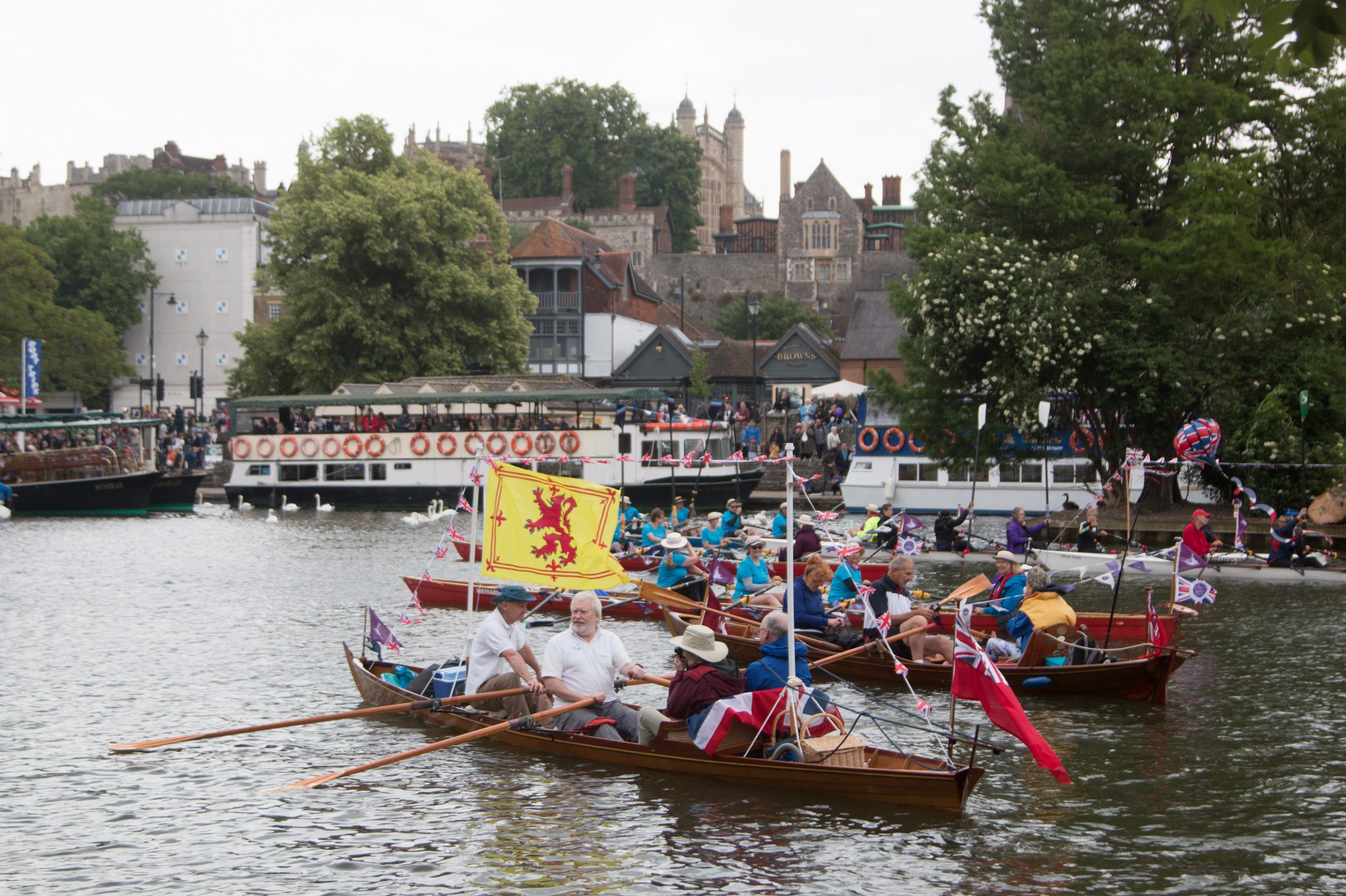 On the morning of Saturday 4th June the Platinum Jubilee Flotilla – a Rowing Procession on the Thames – journeyed through Windsor. The flotilla which was led by the Queen’s Row Barge, Gloriana - by kind permission of Her Majesty The Queen and Lord Sterling - consisted of up to 30 different types of rowing craft including some racing boats, touring quads, some beautiful wooden skiffs, a Bedford Whaler, an outrigger kayak and a dragon boat. The procession rowed down the Thames from Boveney Lock, travelling downstream through Windsor on their journey to Staines, with representatives from rowing clubs in the local area taking part, along with rowers from the Windsor Boys School.